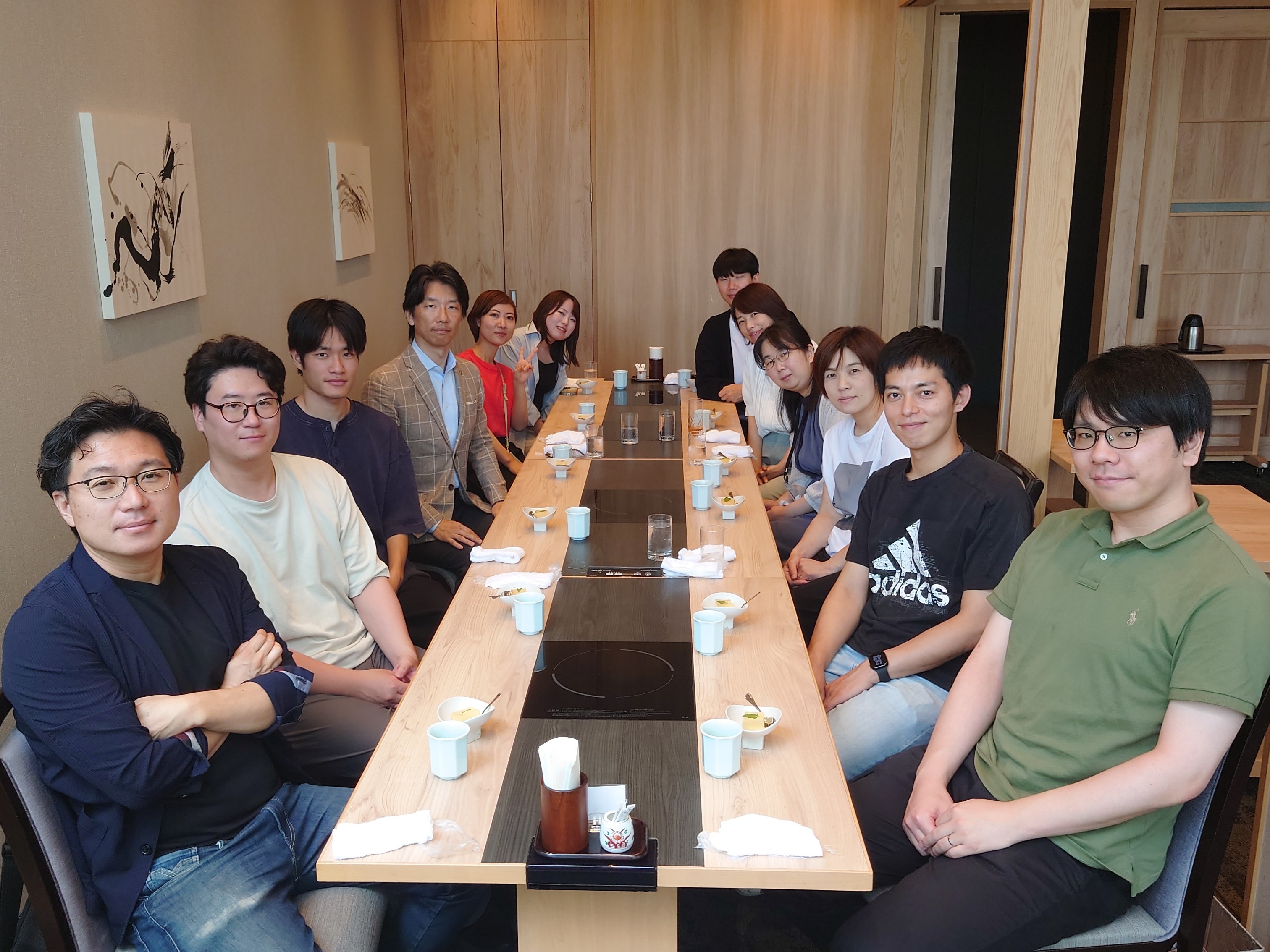 2025/06/20新たに湯川チームに加わって頂いた鈴木先生、小野さん、庄田さんの歓迎食事会(in 木曽路)を開催しました。